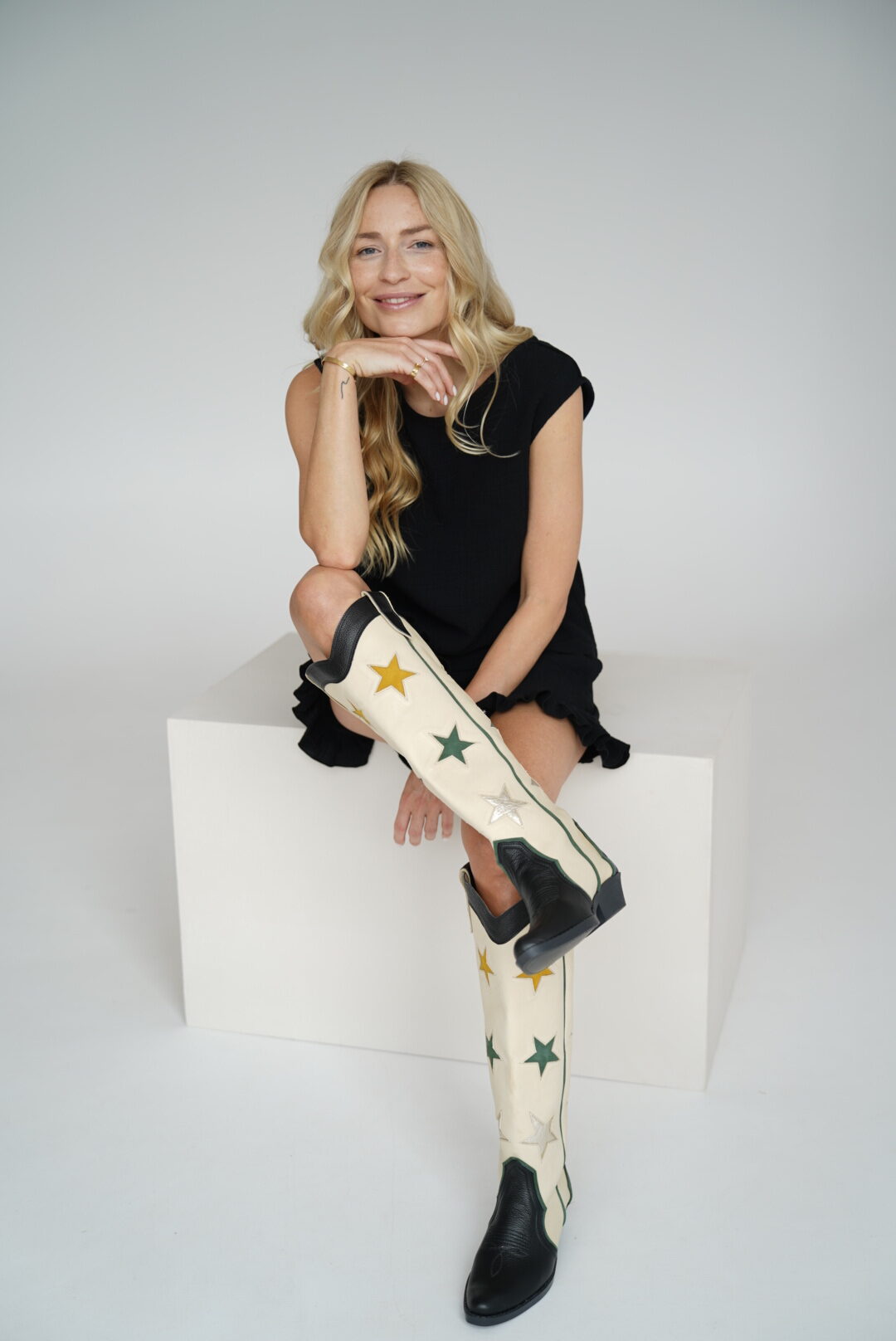 Kozaki do kolan w stylu kowbojskim wykonane z miękkiej skóry licowej, podszyte podszewką.