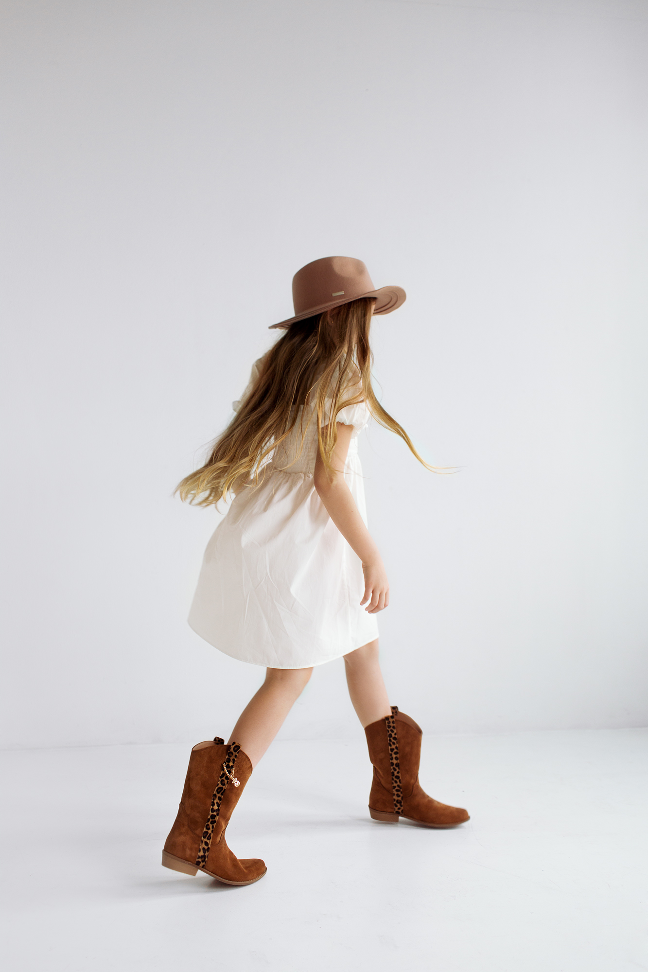 Nasze kowbojki matchy matchy wykonane są z wysokiej jakości skóry welurowej w pięknym odcieniu brązu .