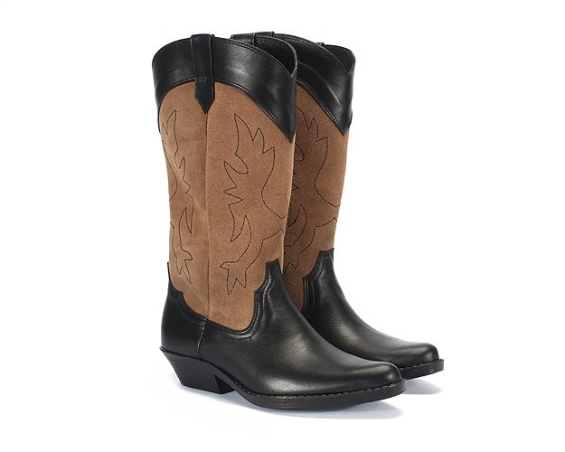 Wyjątkowe kowbojki wykonane ze skóry naturalnej licowej w połączeniu z zamszem .